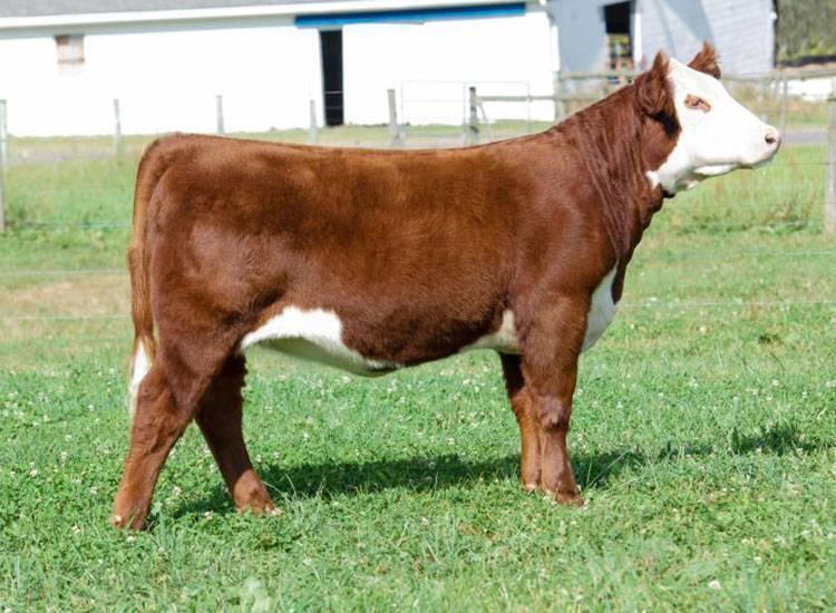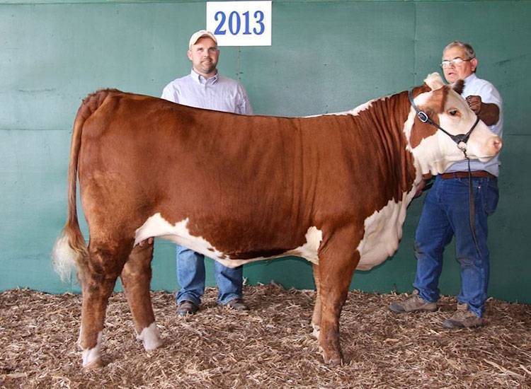 Dahlia has been a special cow for our farm. Out of a bred and owned Crown Royal daughter and sired by our herd bull Powerplay, this cow is how we want to make all of them. She’s a moderate sized, dark cherry red, sound footed, easy breeding female that we’ve been proud to show for the past 3 years. She seems to get better with age and her daughters are a favorite among prospective youth buyers for their docile disposition, cherry red markings and man are they thick!